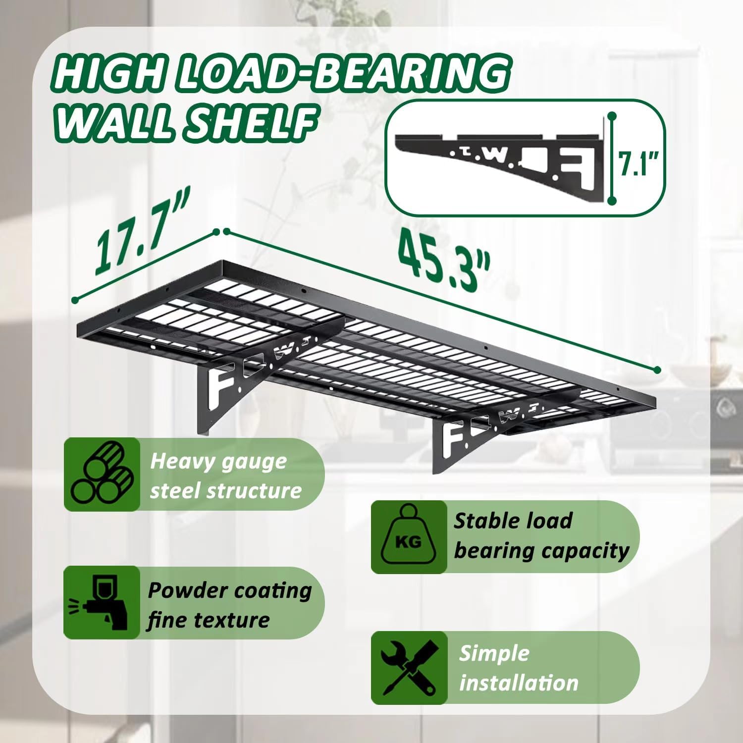 • UNIQUE DESIGN: The surface of the garage wall shelving is made of ‘high temperature powder coating’ process, which makes the surface smoother and more durable, and the edges are also wrapped to avoid scratches.