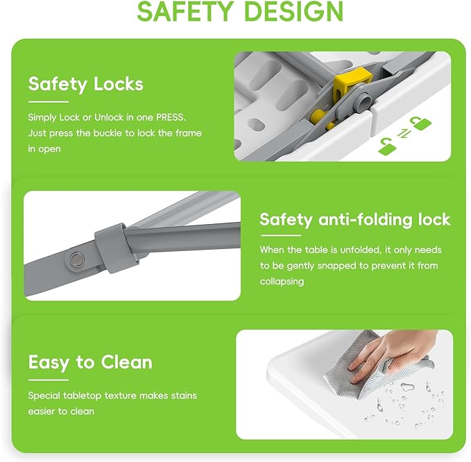 • Safe & Secure Design: Equipped with both a triangular bracket anti-folding lock and a safety lock on the back of the table top, this foldable table and bench set provides added safety and security during use