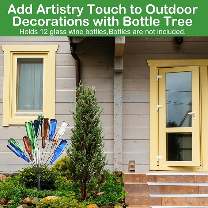 • Package Contents: Enhance the charm of your garden with this sophisticated outdoor metal wine bottle holder, perfectly crafted to accent any landscape. Each bottle holder features 12 elegantly designed branches to display your empty wine bottles (bottles not included), adding a touch of sophistication and vintage flair to your outdoor oasis