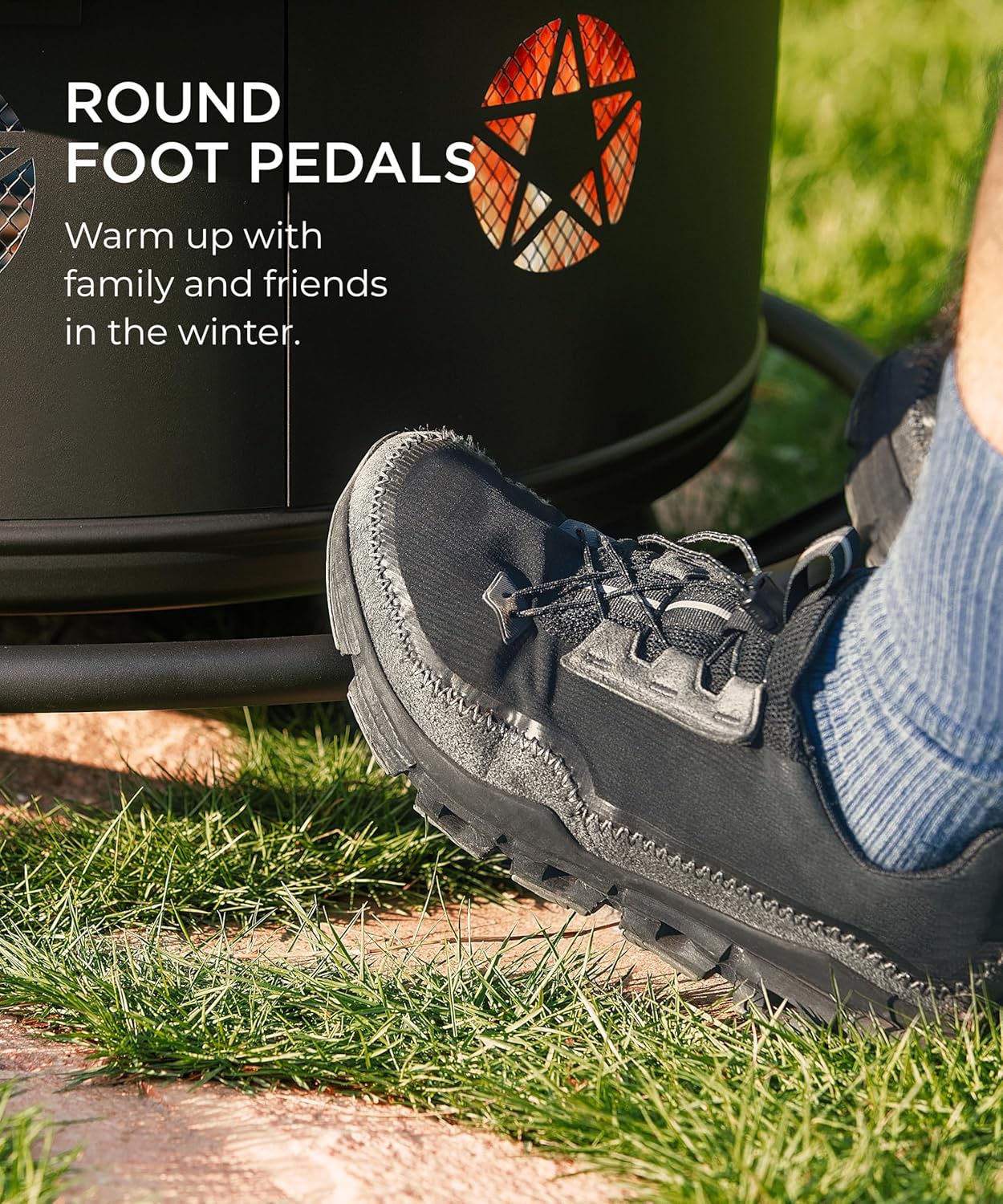 • 【MODERN & HUMANIZED DESIGN】The fire pit table comes with 1 height-adjustable 360° swivel grills which disassemble freely. You can barbecue, keep food warm or put pan to cook on them. The side of wood-burning fire pit is created with charming pentagram cut-out design which catches firelight for creating fun shadows. The drilled design promotes airflow and keeps the fire strong.