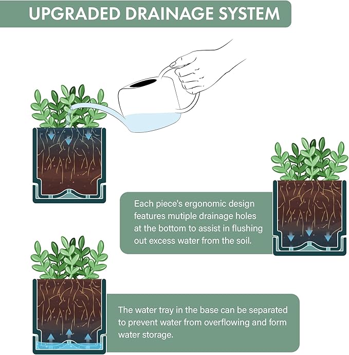 • Excellent Drainage and Tray: The pot features strategically placed drainage holes at the bottom, along with detachable saucers that fit perfectly. This ensures optimal drainage for your herbs, making it ideal for window herb gardens.