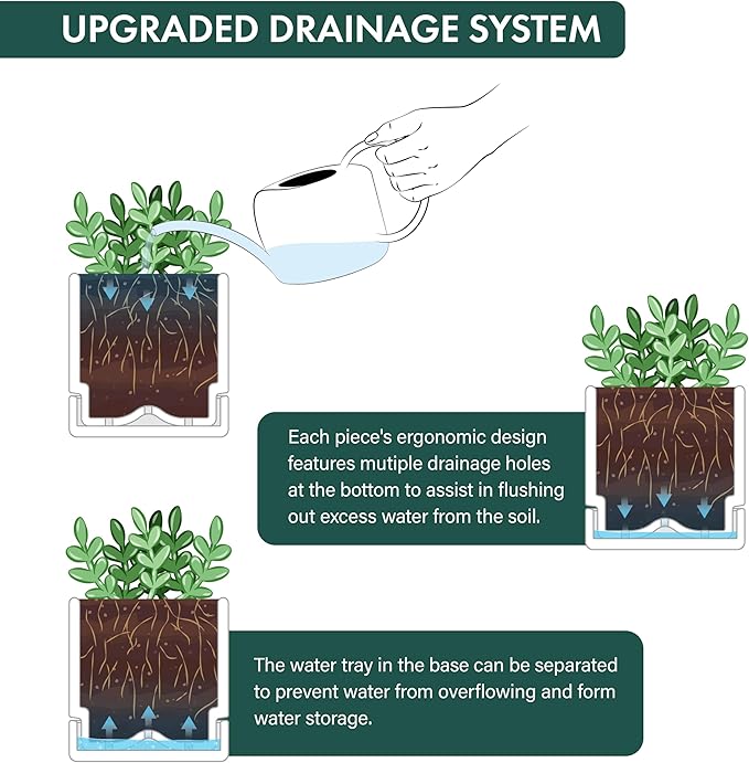 • Excellent Drainage and Tray: The pot features strategically placed drainage holes at the bottom, along with detachable saucers that fit perfectly. This ensures optimal drainage for your herbs, making it ideal for window herb gardens.