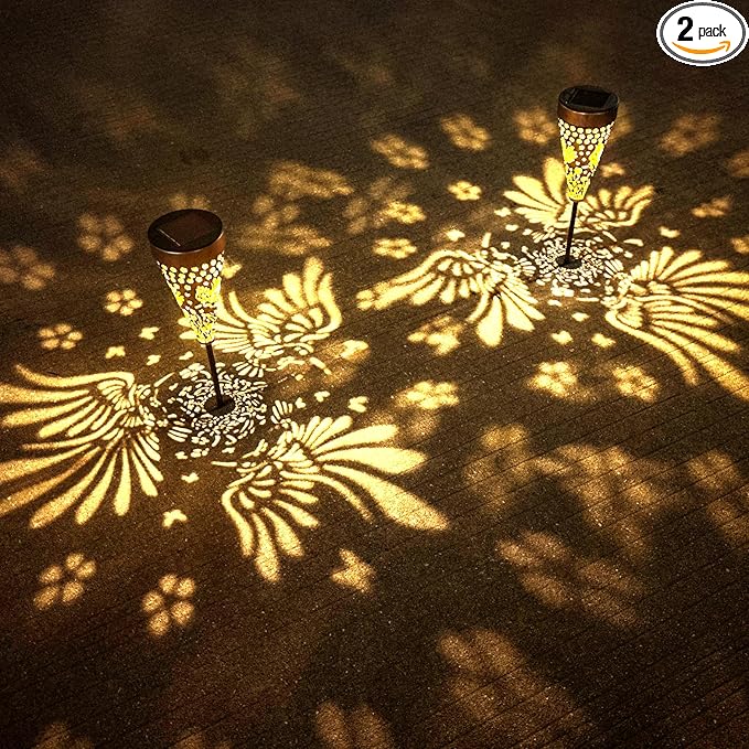 • 【Hummingbird Decor】Profinella's metal pathway lights feature intricate cut-out patterns that project lifelike images of three hummingbirds, transforming your garden, lawn, and outdoor spaces into enchanting nighttime scenes.