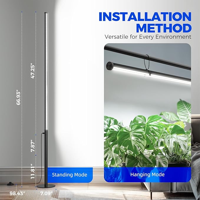 • Adjustable Height for Flexible Lighting : Experience the versatility of our upgraded vertical grow light. With an adjustable height range of 4ft-5.6ft, it caters to tall plants and large plant shelves, ensuring optimal illumination