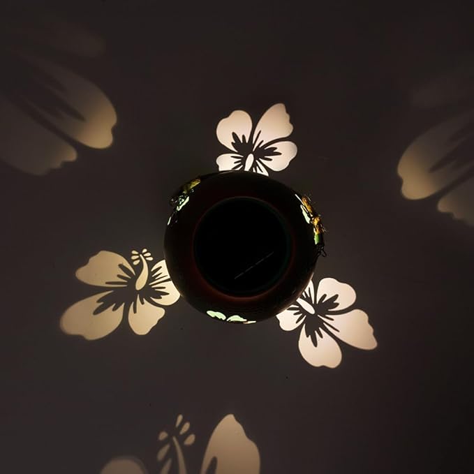 • Hollow Out Desgin: The 2 pack solar lanterns outdoor have a vintage copper green color with hollowed out flower pattern. When light is turned on, outdoor lantern can cast flower shadows around it, making it look vibrant and alive