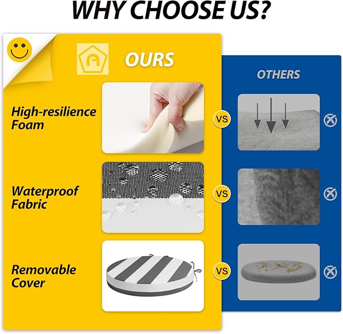 • Wide Use & Tips: These outdoor dining chair cushions fit pools, patios, balconies, decks, backyards, and gazebos. Foam inserts and covers are packed separately in bags and placed in one box—check all parts. Easy assembly required