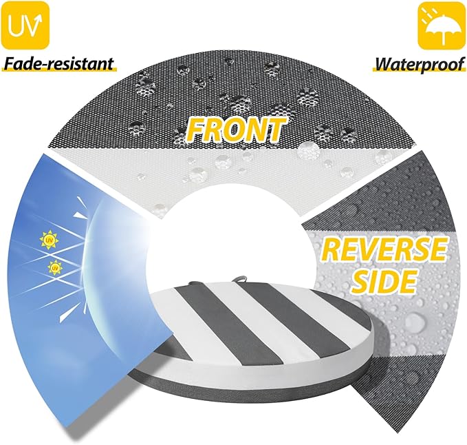 • Waterproof & Removable Cover: Durable, breathable polyester with a waterproof coating, UV protection, and fade resistance for lasting outdoor use. The zippered cover allows easy cleaning and replacement, with hidden zippers for a seamless look
