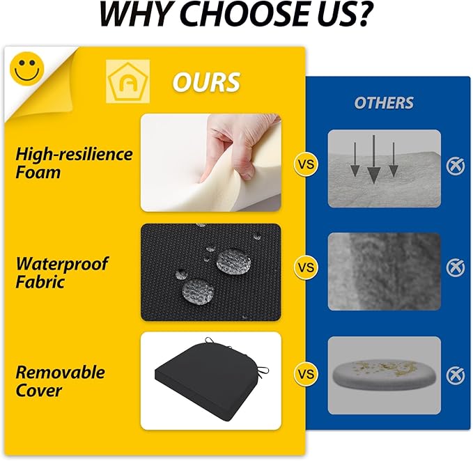 • Wide Use & Tips: These outdoor dining chair cushions fit pools, patios, balconies, decks, backyards, and gazebos. Foam inserts and covers are packed separately in bags and placed in one box—check all parts. Easy assembly required