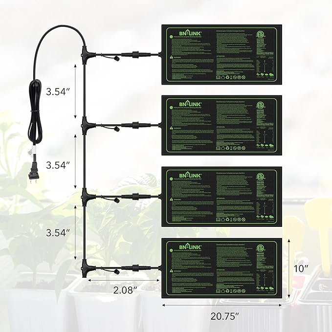 • GREAT SIZE AND SAFE: 10" x 20.75", 17.5 Watts. The mat is the perfect size for standard plastic growing tray. Each unit comes with BN-LINK’s strong 12-month warranty.