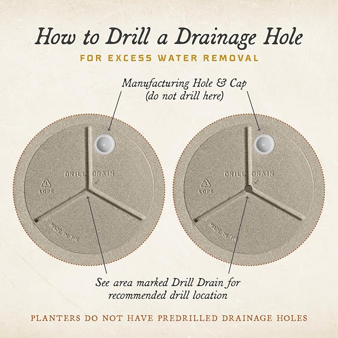 • Plant It All - The Santorini Bowl large outdoor planters provide ample space for diverse greenery, vibrant flowers, and abundant succulents to flourish. Dimensions: 21"x21"x7.5" (15 qt) & 26"x26"x9" (36 qt). Includes drillable drainage holes.