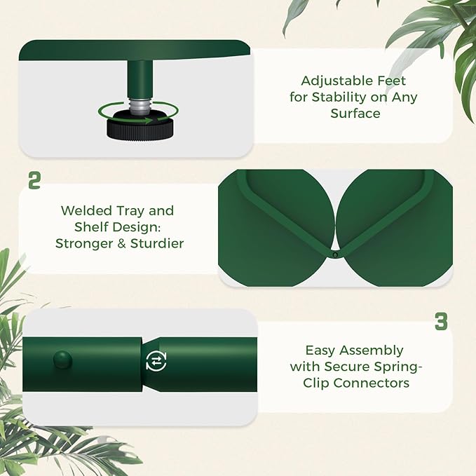 • Adjustable Feet: Ensure stability on any surface with adjustable feet, ideal for indoor plant stands