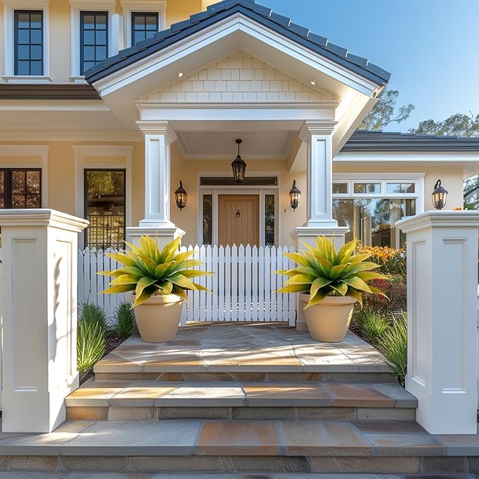 • 🌡About The Large Fake Plants Color: natural yellow , replica of the real agave color, delicate and durable, outdoor sun protection.Low Maintenance Unlike real plants, these artificial agave planters require no watering, pruning, or fertilizing. faux succulent outdoor plant enjoy the beauty of greenery without the hassle of maintenance.