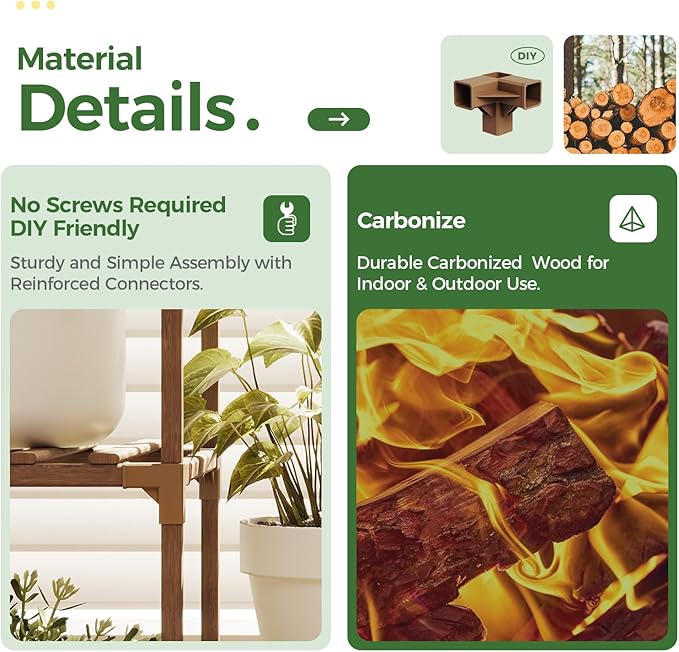 • Durable and Sturdy: This plant stand requires no screws and is perfect for DIY enthusiasts. Utilizes the clever application of the triangular stability principle to enhance stability. Additionally, plastic joints reinforce the structure of the plant stand, ensuring its durability.