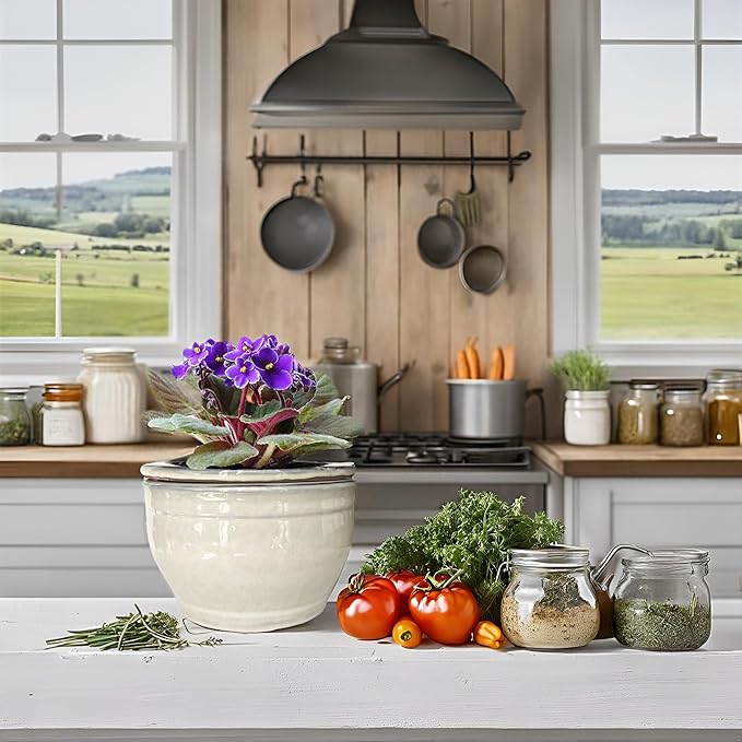 African Violet Pots Self Watering Round Ceramic Violet Pot (White, 6 inch)