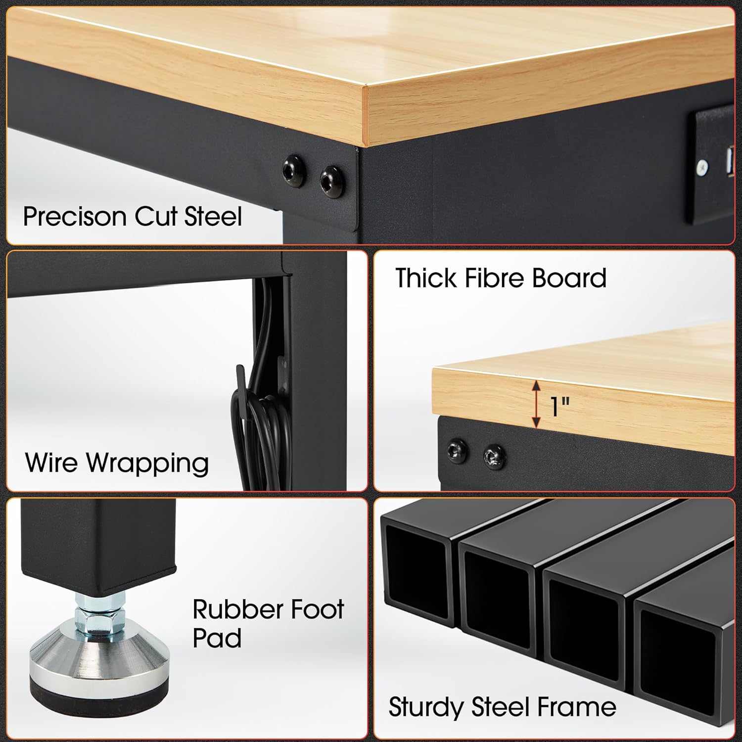 • Suitable Workspace: We offer three styles of workbench 48 x 20, 48 x 20 with socket and 60 x 24 with socket.Whether it's in your home, garage, office, kitchen or study, you can choose the right size for your space