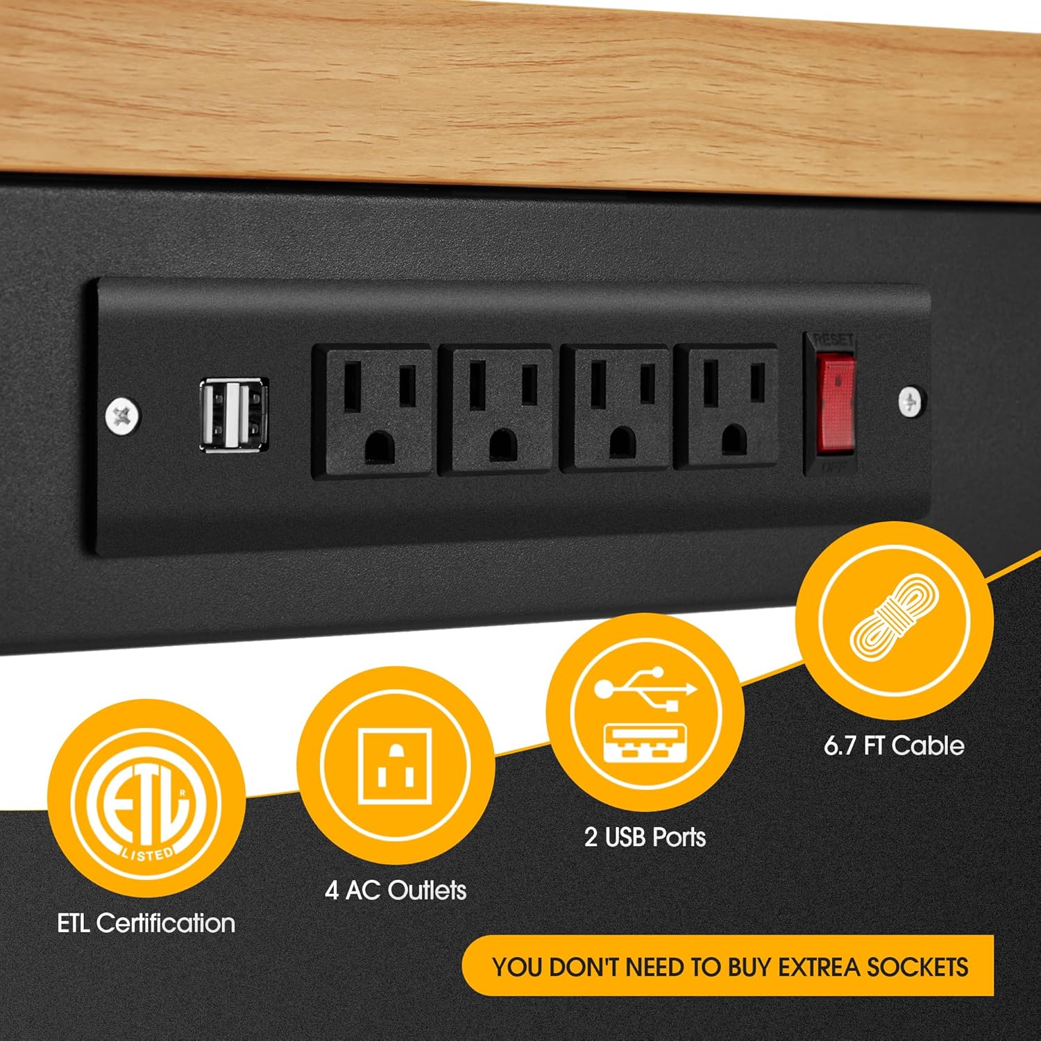 60” Adjustable Workbench,Heavy Duty Wood Work Bench 2000 Lbs Load Capacity,Work Table with Power Outlet for Garage, Workshop, Office, Home