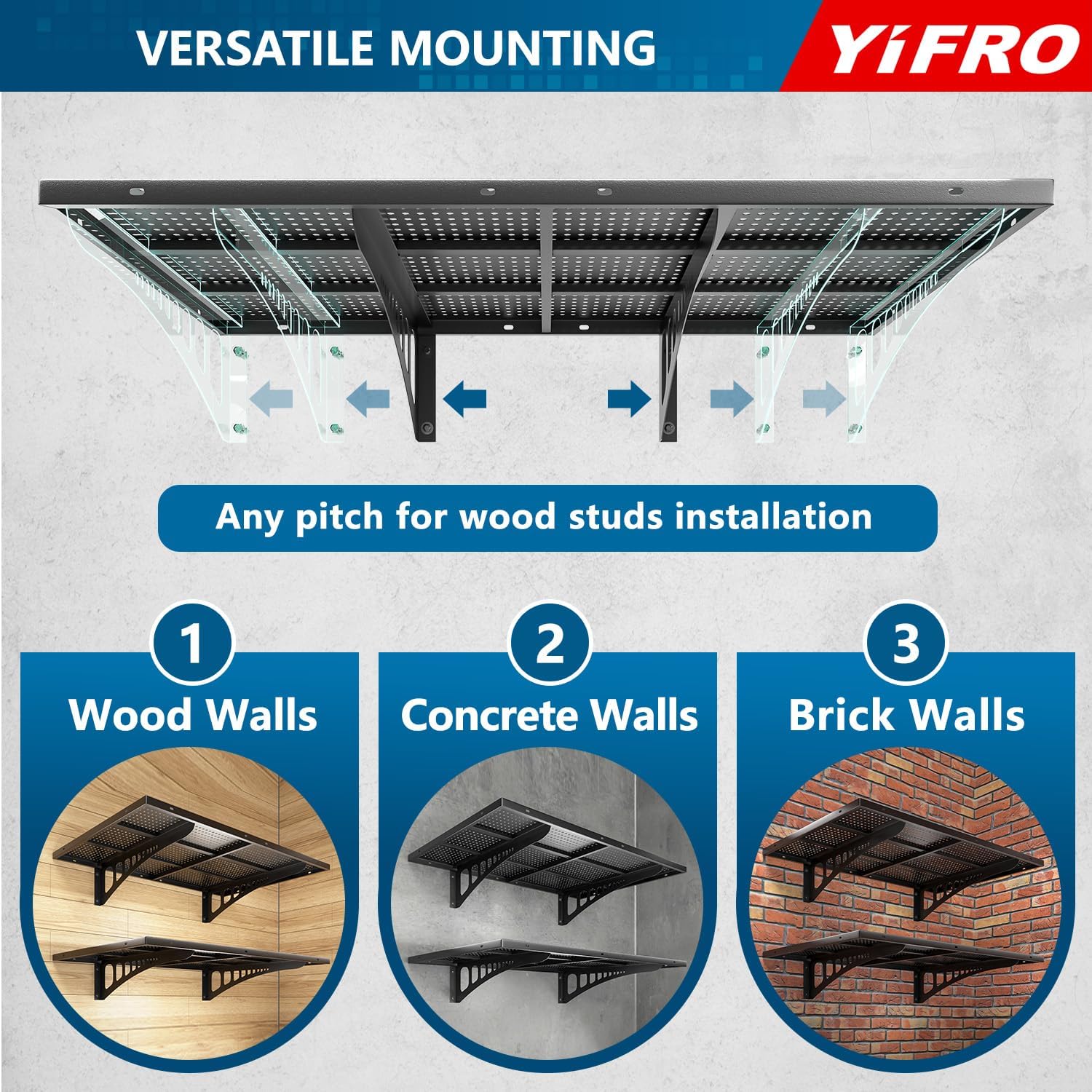 • ADJUSTABLE SPACING: YIFRO garage wall shelves is suitable for any wood post spacing, including standard 16'/18'/24'/32' spacing for installation.