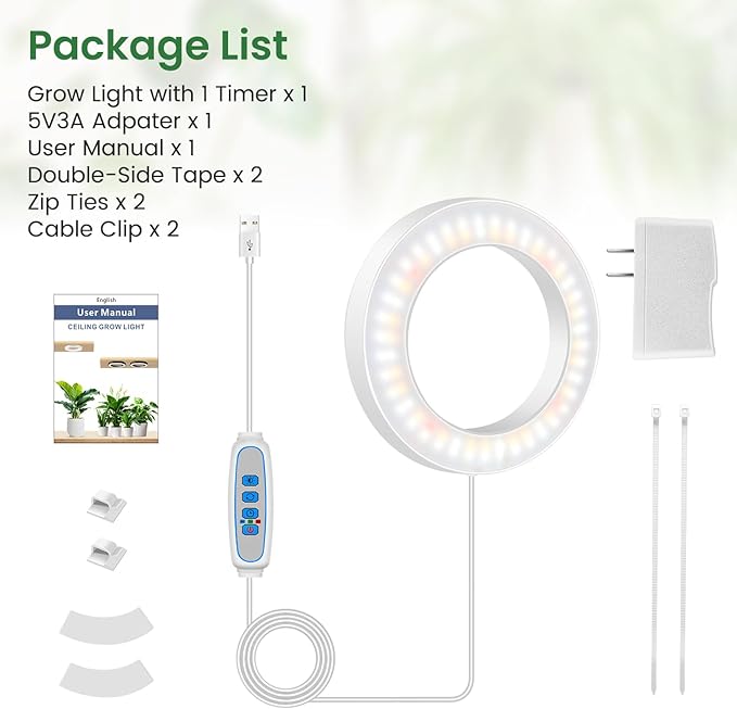 • 【Easy Installation and Wire Clips for Tidy Setup】The package included ties, strong double-sided tape, and wire clips for a secure and tidy setup. The power cord is 118 inches long for easy using in window wells, plant shelves, under cabinets and more. Create a thriving indoor garden with this versatile plant lamp
