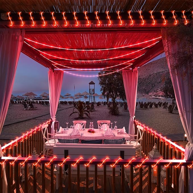 • 【Waterproof Outdoor String Lights】- IP65 Waterproof design, they are suitable for all weather use, remaining bright and sparkling even during strong rain and windy days. The outdoor rope lights is ideal for year-round outdoor decor and can illuminate gazebos, canopy, corridors, gardens, and patios. But please note the plug is not waterproof.