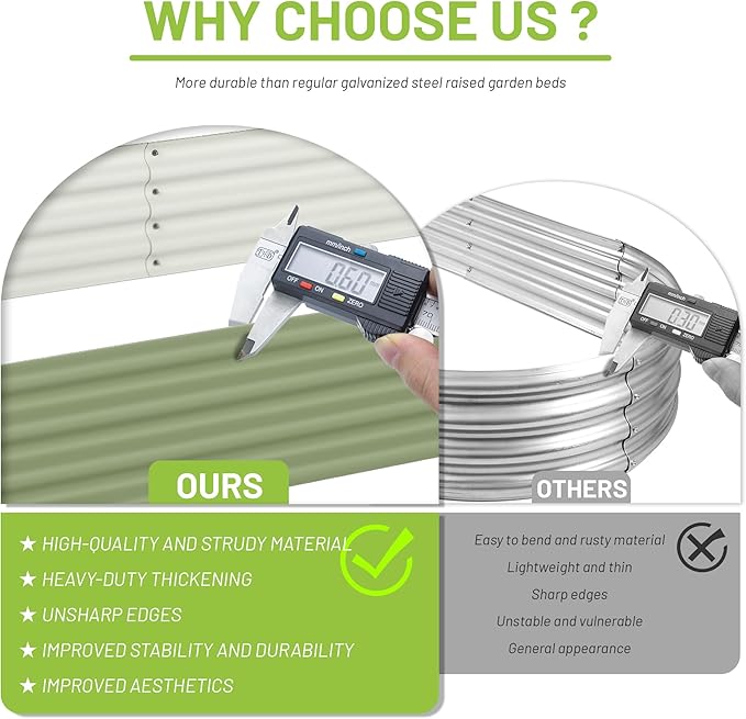 • HIGH-QUALITY MATERIALS: The product uses color-coated metals, which have better surface gloss than other painted metal plates and they are less likely to lose paint and color. We also use thicker metal plates which will better protect the soil and vegetables and will not easily cause product deformation and damage.