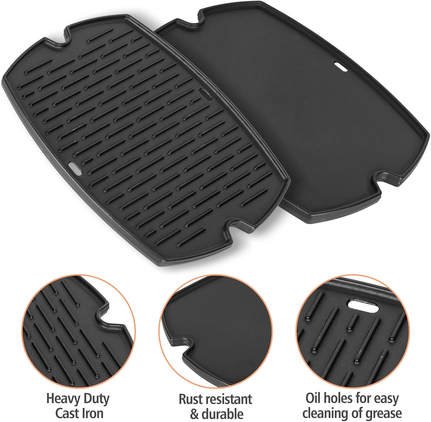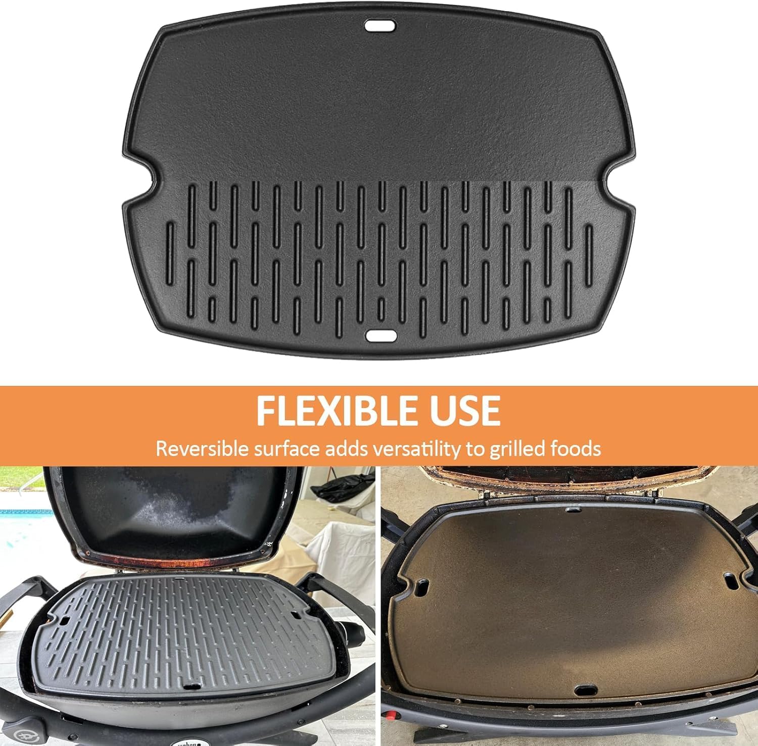• Compatibility: Cast iron griddle fits Weber Q200 Q220 Q240 Q2000 Q2200 Q2400 Q2800 series gas grills. Replacement for Weber 7583 7645 original part number grill griddle. Compatible with Weber 394001 396000 396001 53060001 54060001 54060301 55020001 566001 566002 566801 567798 592001 616002 models