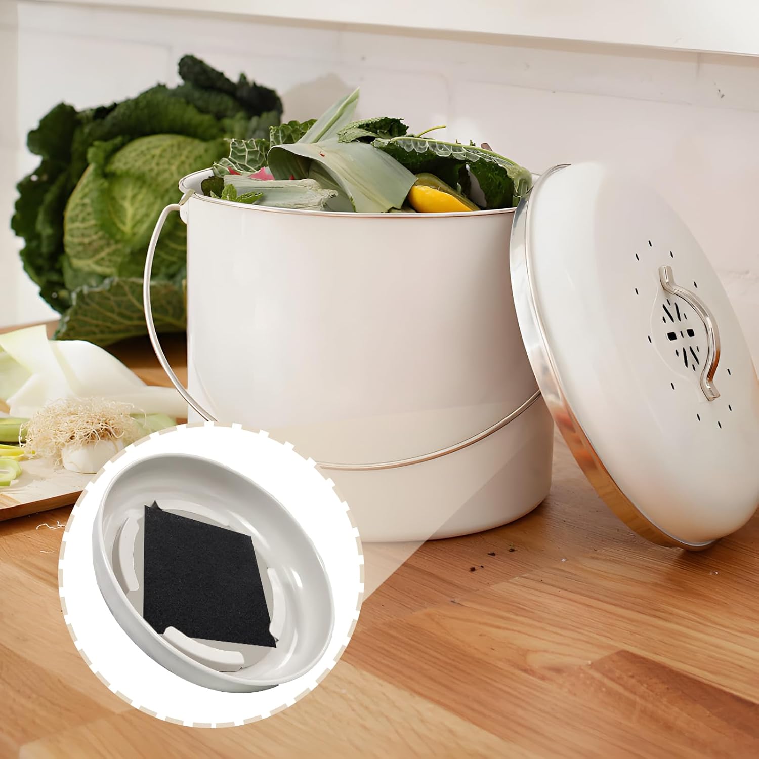 • Preferred Material: The charcoal filters for kitchen is made of activated carbon, which can effectively absorb the smells of the compost bin and prevent food smells from escaping from the compost bin