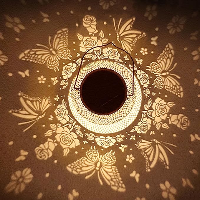 • Graceful Decorative Design - The retro appearance, with gold copper color and hollow out metal veneer, the solar outdoor lanterns casts bright and warm light in darkness, accompanied by gorgeous and graceful butterfly patterns, adding a beautiful atmosphere to the surrounding environment.