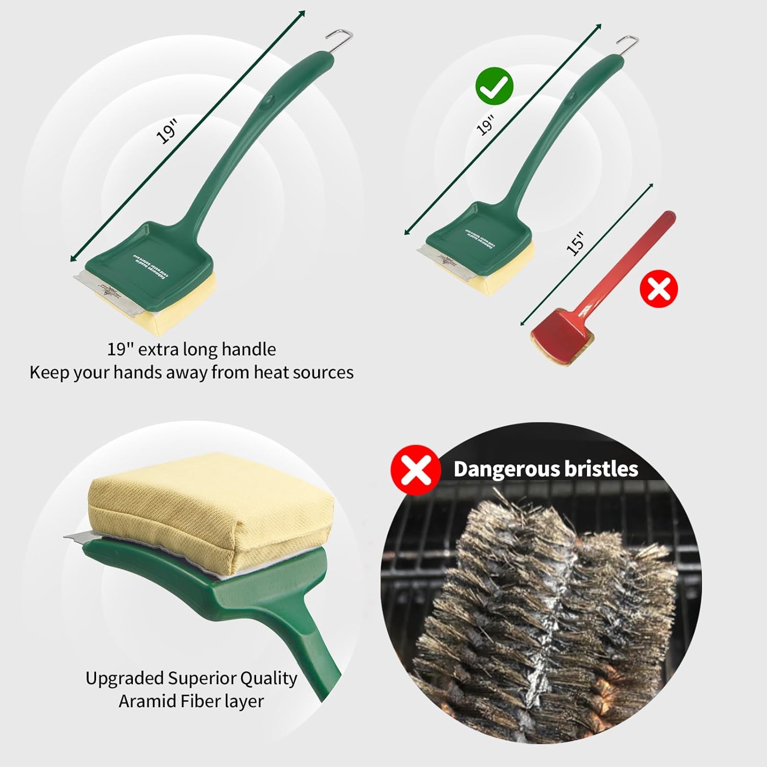 • 【Keep your hands away from heat sources】Not only have we’ve tested this safe bbq brush on numerous gas, charcoal, pellet, and flat-top grills; The 19" reinforced handle never bends or breaks,keep your hand and arm hair away from the intense heat. It truly is the world's safest grill brush