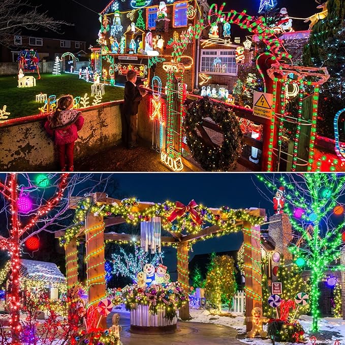 • IP 65 Waterproof Christmas lights : The outdoor rope lighting is covered with a transparent and thick round PVC tube that allows 360°full illuminating and is strong and heat-resistant. With waterproof IP65, it is suitable for indoor and outdoor Christmas decorations. (NOTE: The plug part is not waterproof)