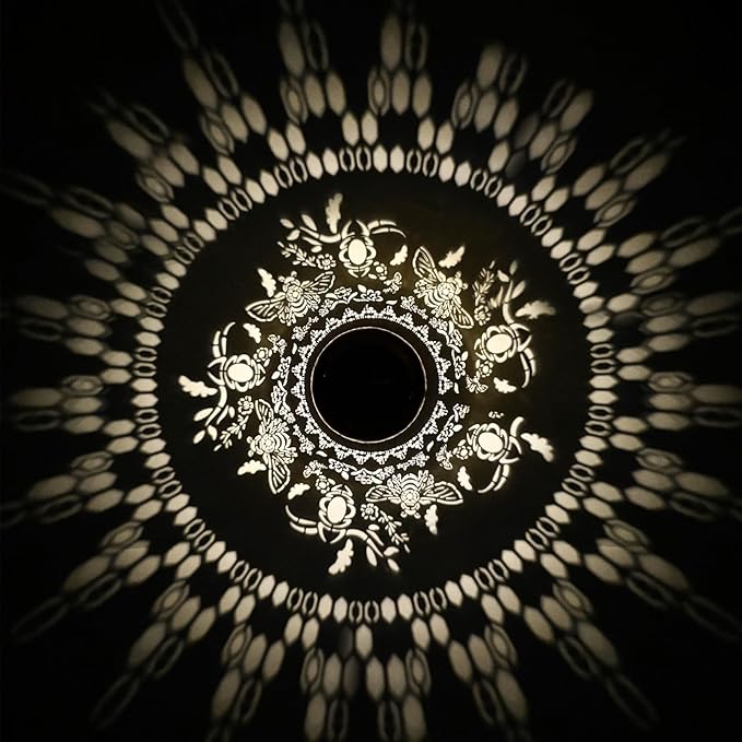 • 【Bee Garden Decoration】The solar outdoor lantern is inspired by animal elements in nature. It projects bright bee patterns in the dark, creating a gorgeous and warm atmosphere and bringing vitality and fun to your garden. It adopts a gold-copper color and hollowed-out metal finish, presenting a retro look.