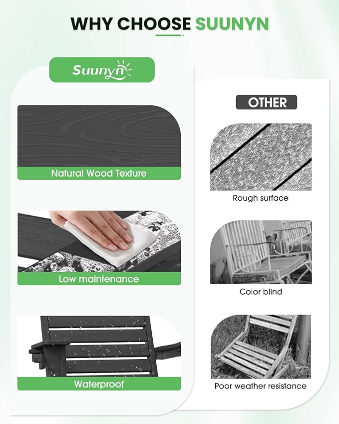 Adirondack Chairs Set of 2, Outdoor Fire Pit Chairs, HDPE All-Weather Adirondack Chairs with Cup Holder, Lawn Chair for Deck, Patio, Garden (Black)