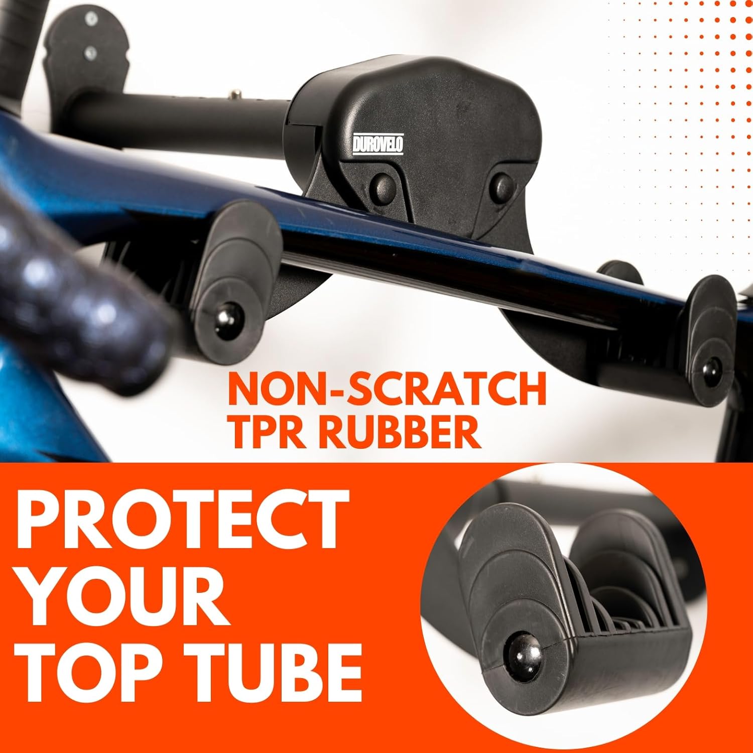 • PROTECT YOUR BIKE FRAME: Super soft NonScratch TPR rubber cradles safeguard aluminum, carbon, and steel frames from scratches. Includes an elastic rope to stabilize the front wheel, preventing wall scuffs and movement. Perfect for preserving your bike’s finish.