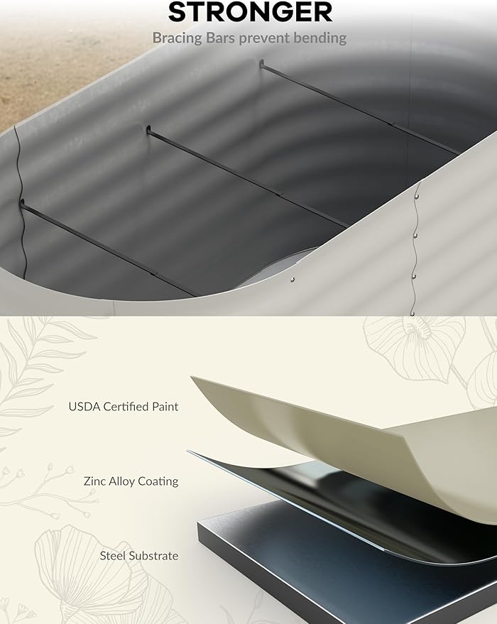 • [Open-bottom Design] The open-bottom design of the planting bed promotes root growth, improves drainage, enhances soil health, regulates temperature, reduces weed competition, facilitates maintenance, and fosters an environment for sustainable plant growth