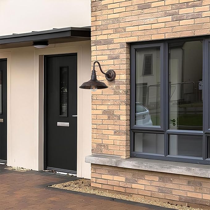 • ★【Gooseneck Outdoor Wall Sconce】The set of 4 outdoor barn light with elegant gooseneck arm combines vintage and industrial styles, bringing an attractive and classy look to your home, easily sublimate your various decorations and create a pleasant atmosphere.