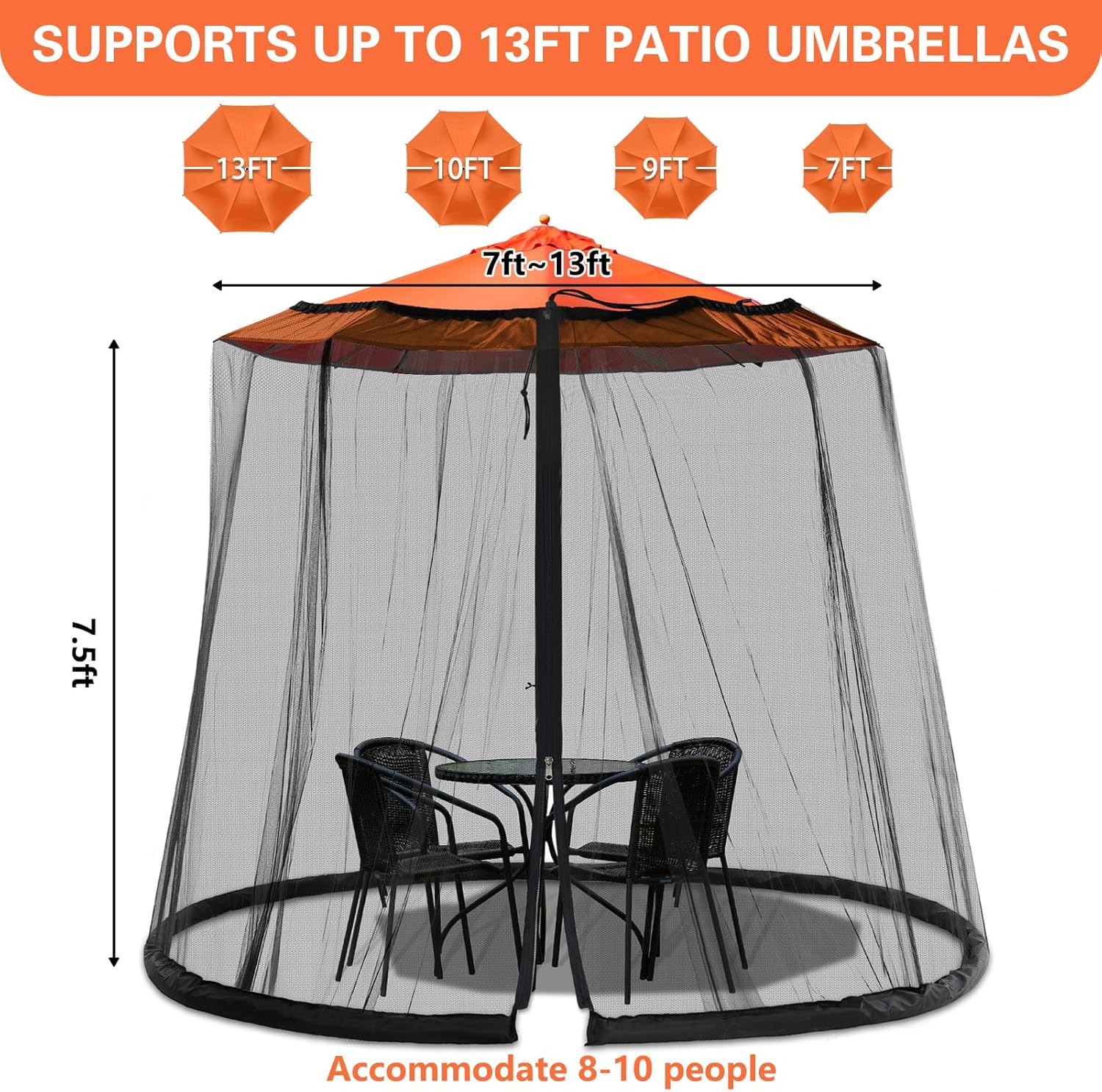 7.5-13FT Mosquito Netting for Patio - Mosquito Net for Patio Garden and Outdoor Umbrellas with Zipper and Adjustable, Umbrella Netting for Outdoor Umbrellas