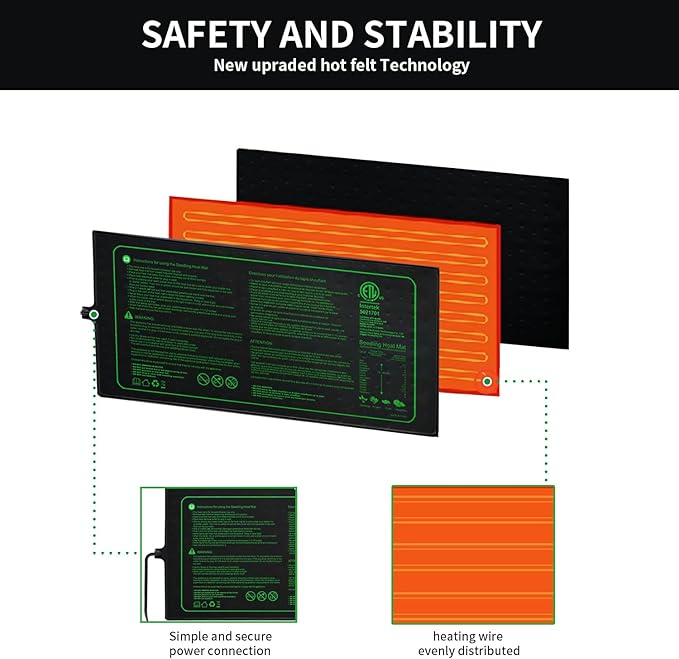 • Certified Safety & Reliability:Ruyyi plant warming mat with ETL listed,Conforms with UL 499, Conforme à la norme UL 499,CSA C22.2 No64