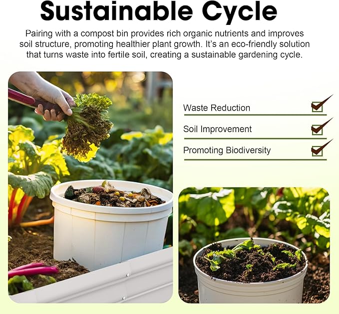 • 【Convenient & Organic】The height of the galvanized raised garden bed greatly reduces the burden of bending over to plant, making it easier for you to perform routine maintenance such as watering, fertilizing and weeding. In addition, our beds can be used with compost bins to effectively utilize kitchen waste and enjoy an organic lifestyle!