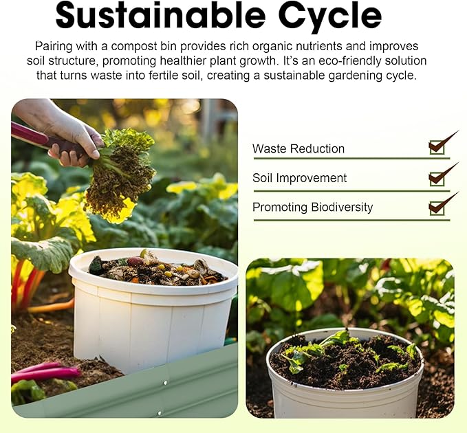 • 【Convenient & Organic】The height of the galvanized raised garden bed greatly reduces the burden of bending over to plant, making it easier for you to perform routine maintenance such as watering, fertilizing and weeding. In addition, our beds can be used with compost bins to effectively utilize kitchen waste and enjoy an organic lifestyle!