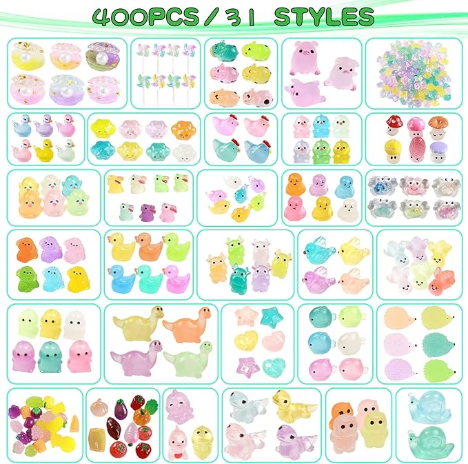 400pcs Luminous Mini Resin Animal in The Dark Tiny Miniature Figures Ornament Duck Frog Mushroom Owl Dog Rabbit Crab Dolphin Shell Fairy Garden Accessories Aquarium Landscape Bonsai Decor