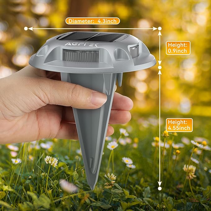 • 【2 Colors In 1】Warm Light & White Light, Two Color Options for you to choose. Unlike other single color solar deck lights, dual-color driveway lights let you can freely choose color to fits different needs, like holiday decoration or daily used.