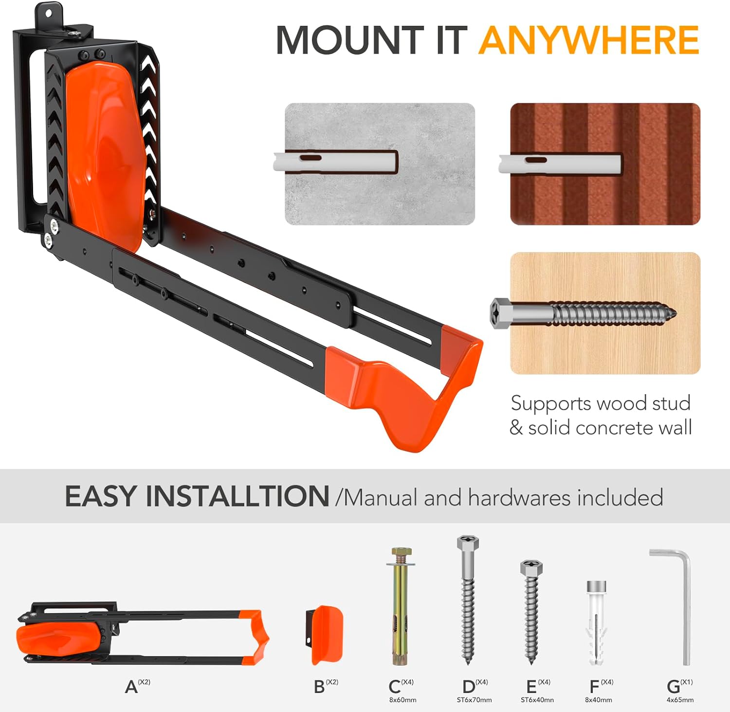 • Easy to Install:All necessary installation accessories and detailed instructions are included for hassle-free installation on wood, concrete walls.