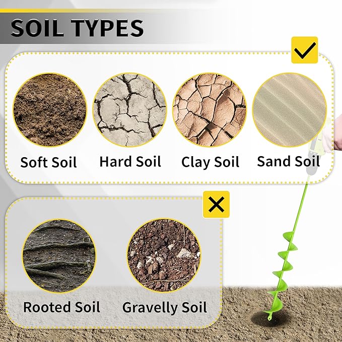 • 【Applicable Soil】Our auger drill bit for planting is ideal for use in sandy, loamy, and clay soils that are relatively soft. It excels in these types of soil, ensuring efficient and precise drilling. However, it is not recommended for soils with many rocks or dense root systems, as these can hinder its performance.