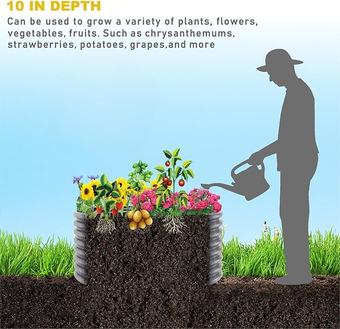 • 【Durable Galvanized Steel Construction】:Crafted with high-quality galvanized steel, this metal raised garden bed is built to last. The anti-corrosion coating ensures long-term durability, while the sturdy structure withstands heavy soil and weather conditions, making it perfect for outdoor use. Unlike traditional wooden garden beds, it resists warping and rotting over time.