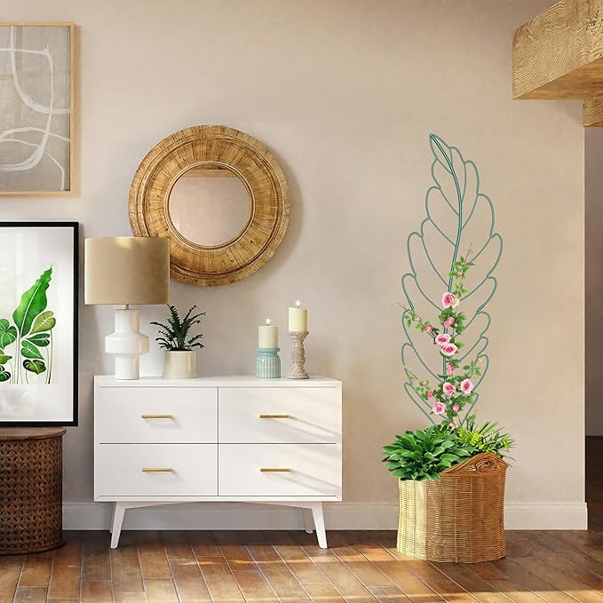 • Optimal Size for Various Spaces: Measuring 59"H x 16"W, our leaf-shaped plant trellis is the perfect size for both indoor and outdoor placement. Its design ensures that your climbing plants receive the support they need to grow healthily and beautifully