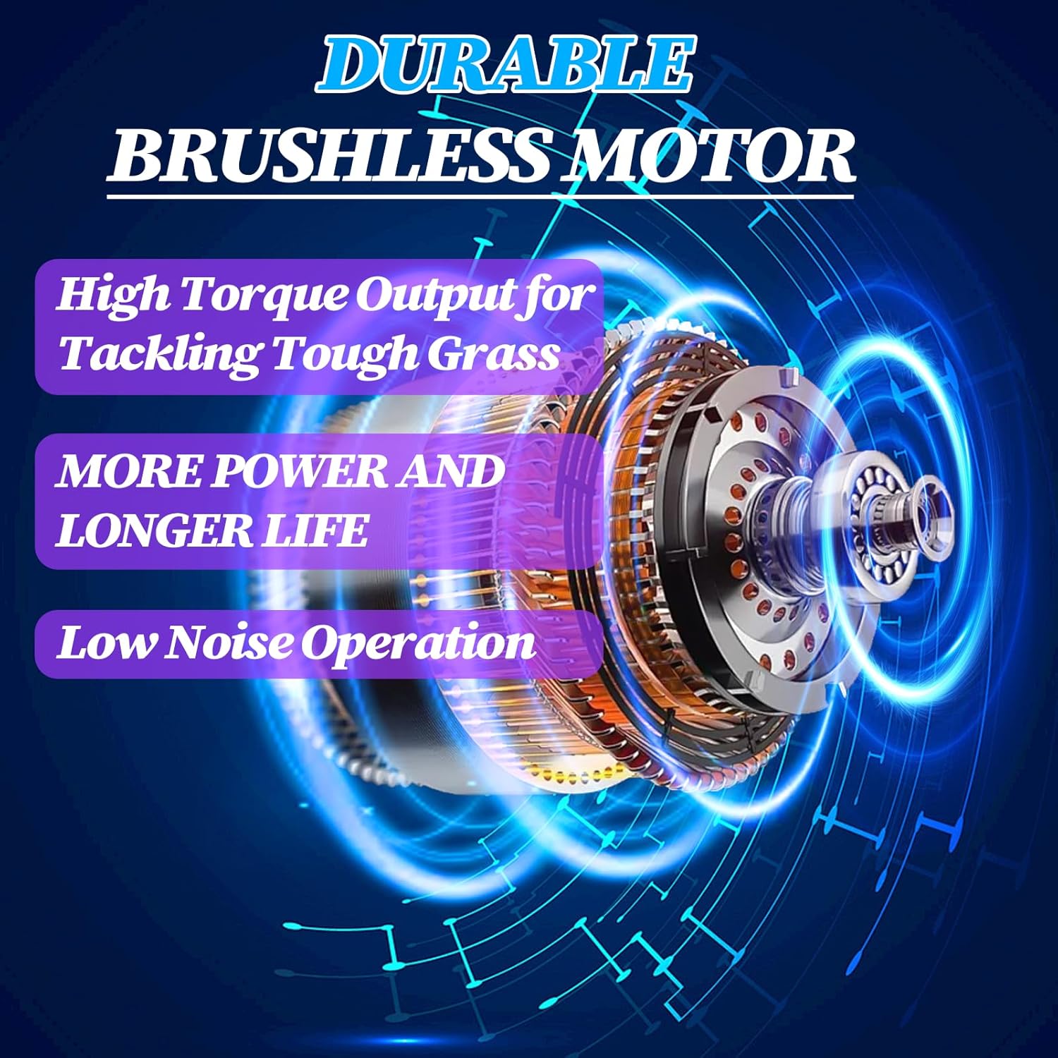 • 【Enhanced Brushless Motor】 Crafted for exceptional durability, this brushless motor delivers a notably longer service life. Its gear-driven design produces high torque for the blades, providing stronger power and a sharper, faster cut.