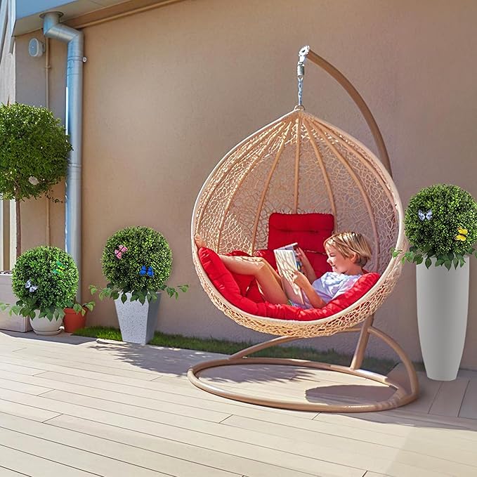 • 【90-Second Setup & Versatile Styling】 Pre-assembled structure with bendable vines and embedded ground spike allows instant installation in soil, pots, or rocky terrain. Rotate 360° to showcase fake butterfly ornaments from every angle – Our evergreen faux boxwood balls is perfect for photo-ready porch décor or events