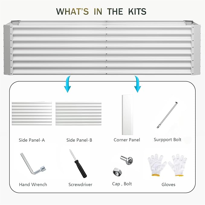 • Package: garden bed kit, installation tools, assembly manual, screw nut accessories.