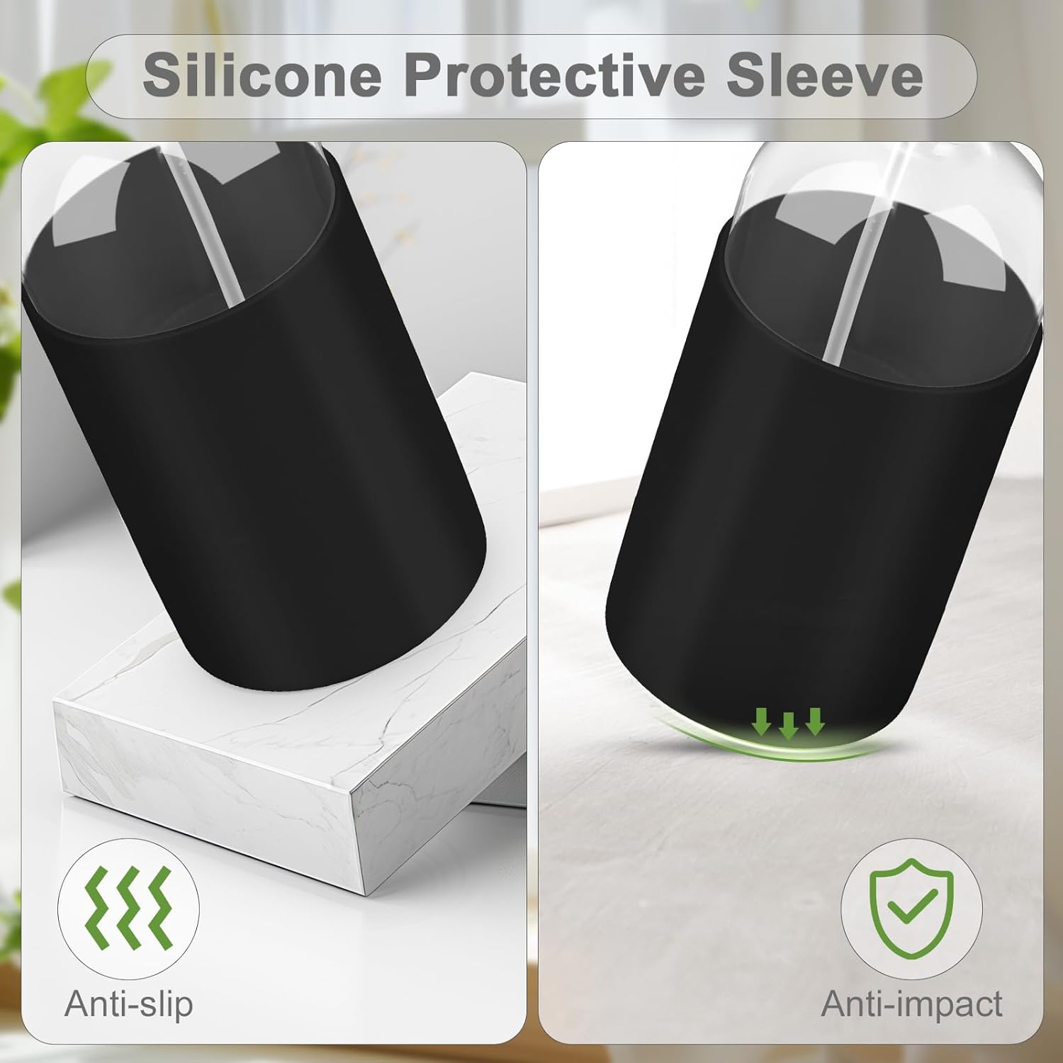 • Premium Glass & Sturdy Silicone Sleeve: Crafted from high-transparency glass, our bottle offers a clear view of liquid levels, ensuring effortless monitoring and usage. The included silicone sleeve ensures minimizing the risk of breakage and slips, making it safe for daily use.