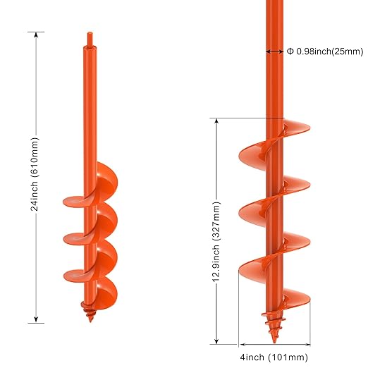 • 𝑾𝒆𝒍𝒍 π‘ͺ𝒐𝒏𝒔𝒕𝒓𝒖𝒄𝒕𝒆𝒅: Insaga garden auger drill bit for planting made from 0.98" /25mm diameter high strength steel with a heavy duty orange powder coated finish, with a unique threaded screw at the tip design, this is an essential tool for mass planting bulbs, tubers, rhizomes, trees, etc.