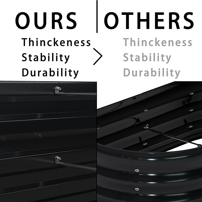 • EASY ASSEMBLE: With upgraded screws and heavy duty middle rods, just need few minutes to setup your new raised garden bed! Please wear the gloves we provided before installation.